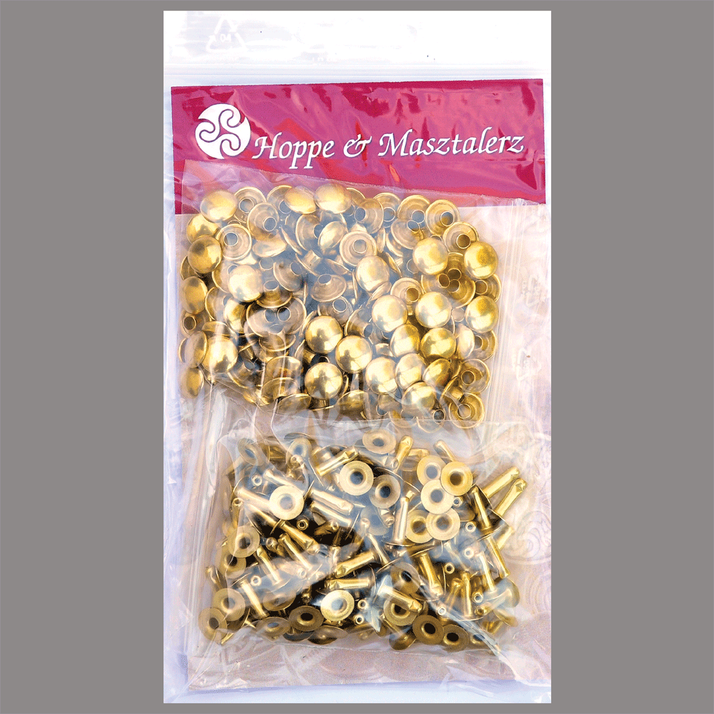 Doppel-Hohlnieten Ziernieten 2-teilig 11mm "11/12" aus Eisen (nickelfrei), Finish: messing-glänzend (goldfarben)