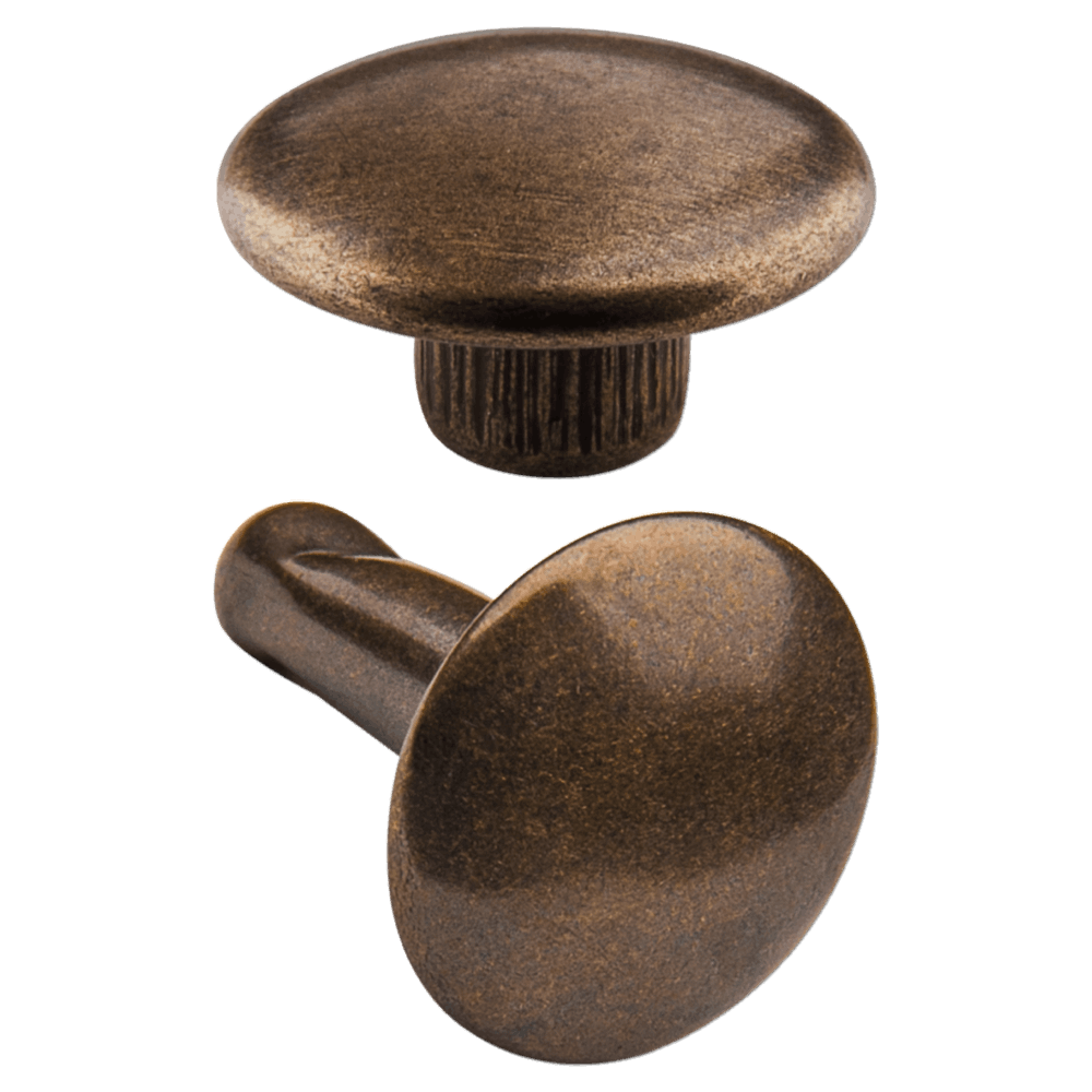 Doppelkopf-Hohlnieten Ziernieten 2-teilig 9mm "9/10/2" aus Eisen (nickelfrei), Finish: messing-antik