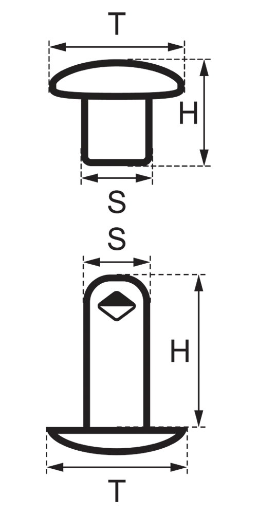 • Beide Teile sind mit einer Kappe versehen. Ideal wenn es auf eine beidseitig gut aussehende Vernietung ankommt