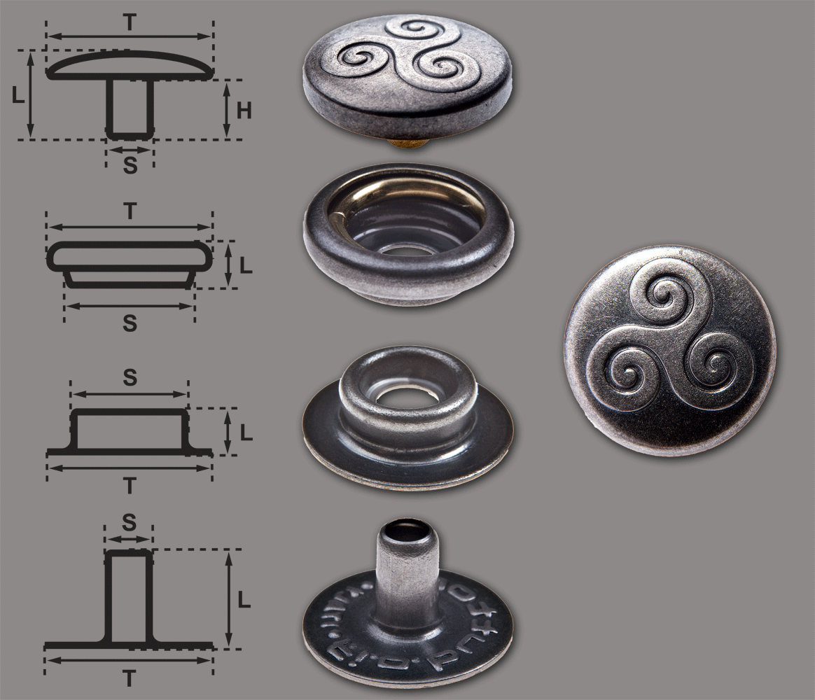Die entsprechenden Werkzeuge sowie ein reichhaltiges Sortiment an Druckknöpfen aus verschiedenen Materialien (nickelhaltig, nickelfrei), Oberflächenveredelungen, Kappengrößen, Verzierungen und Verschlusskräften in unterschiedlichen Verpackungseinheiten finden Sie in in unserem Shop.