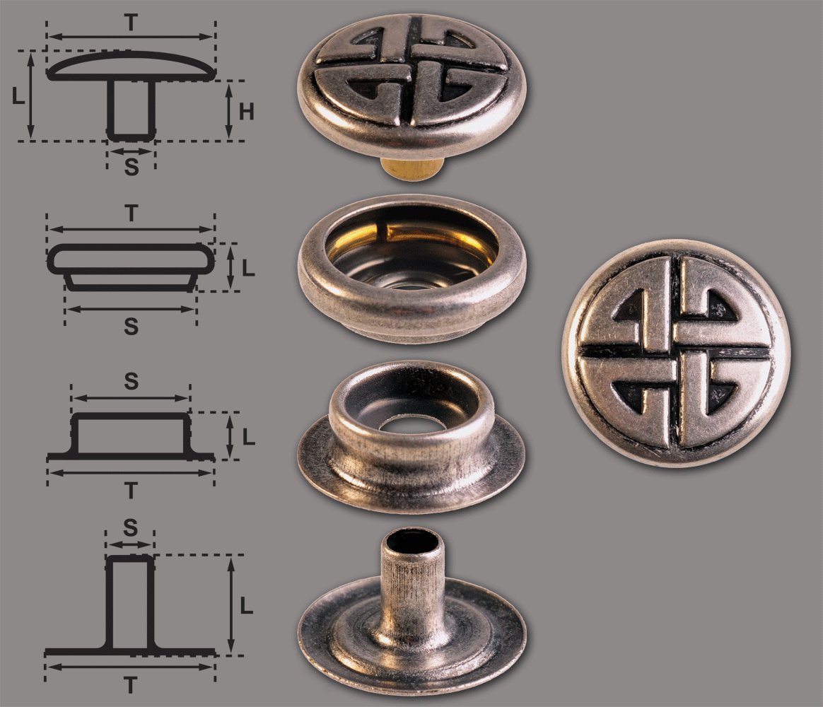 Ringfeder-Druckknöpfe “F3” 14mm Keltischer Knoten aus Messing (nickel frei), Finish: silber-antik