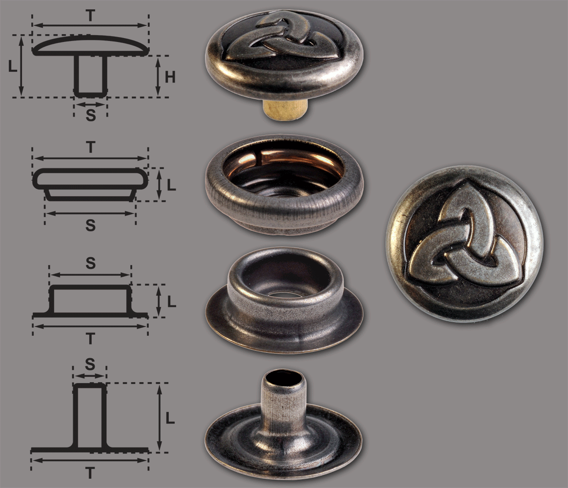 Die entsprechenden Werkzeuge sowie ein reichhaltiges Sortiment an Druckknöpfen aus verschiedenen Materialien (nickelhaltig, nickelfrei), Oberflächenveredelungen, Kappengrößen, Verzierungen und Verschlusskräften mit unterschiedlichen Verpackungseinheiten, finden Sie in unserem Shop.