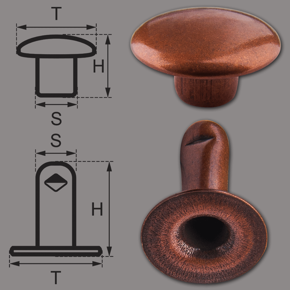 Doppel-Hohlnieten Ziernieten 2-teilig 7mm "7/8" aus Eisen (nickelfrei), Finish: kupfer-antik