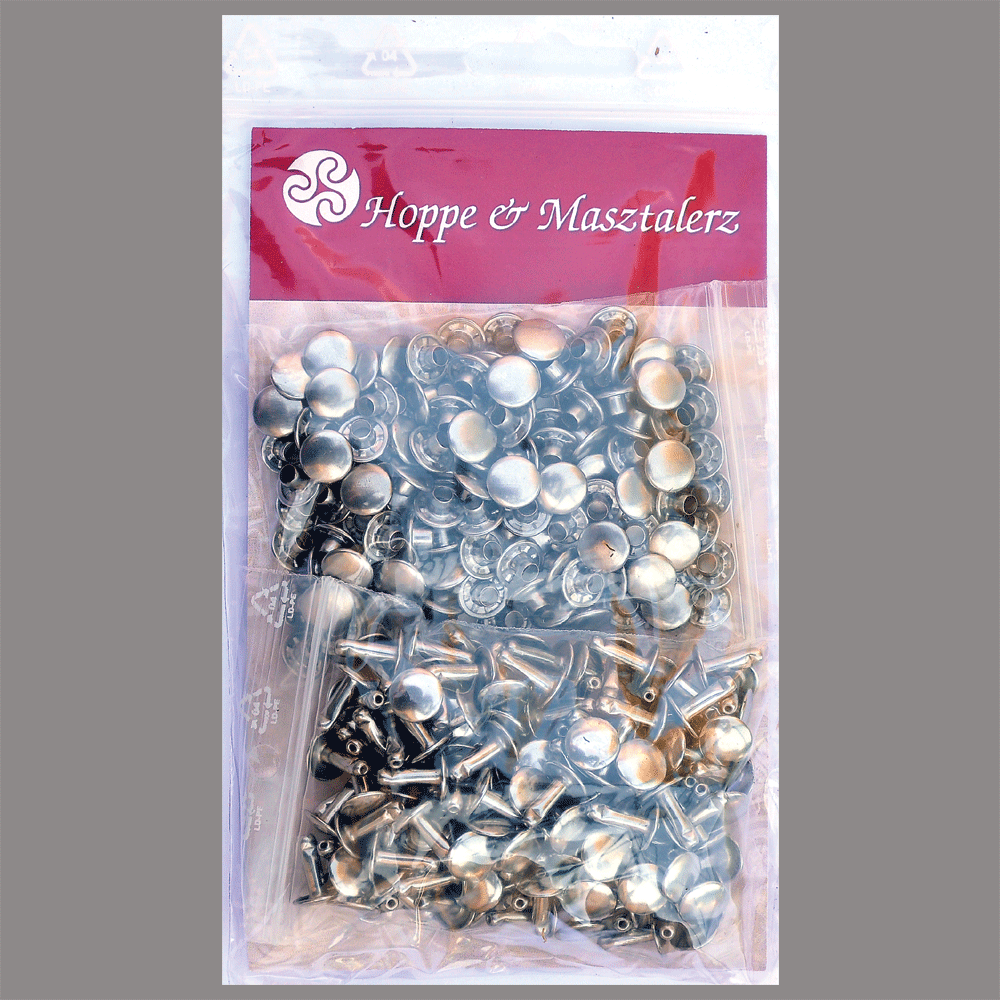 Die entsprechenden Werkzeuge sowie ein reichhaltiges Sortiment an Hohlnieten aus verschiedenen Materialien (nickelhaltig, nickelfrei), Oberflächveredelung und Größen finden Sie in unserem Shop.