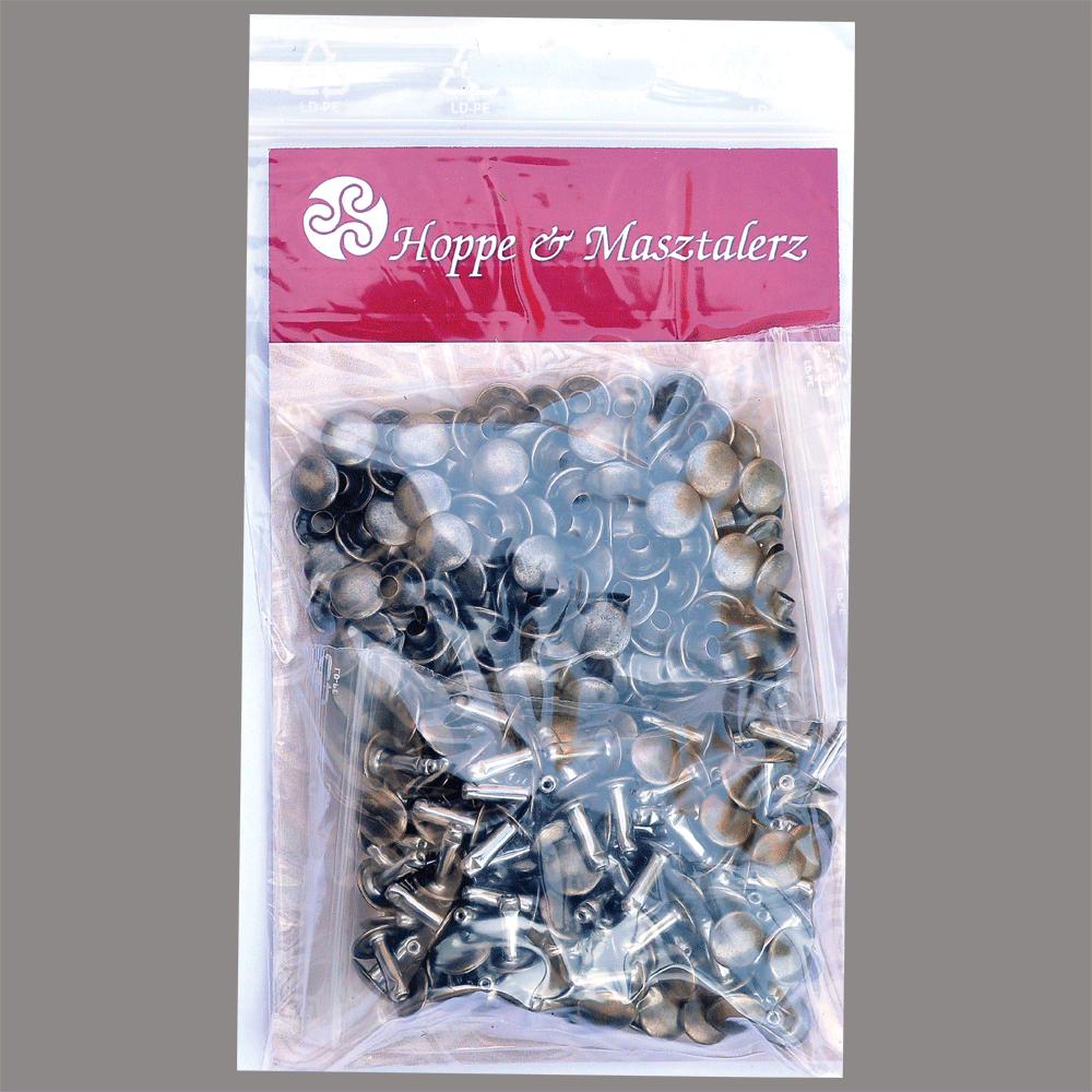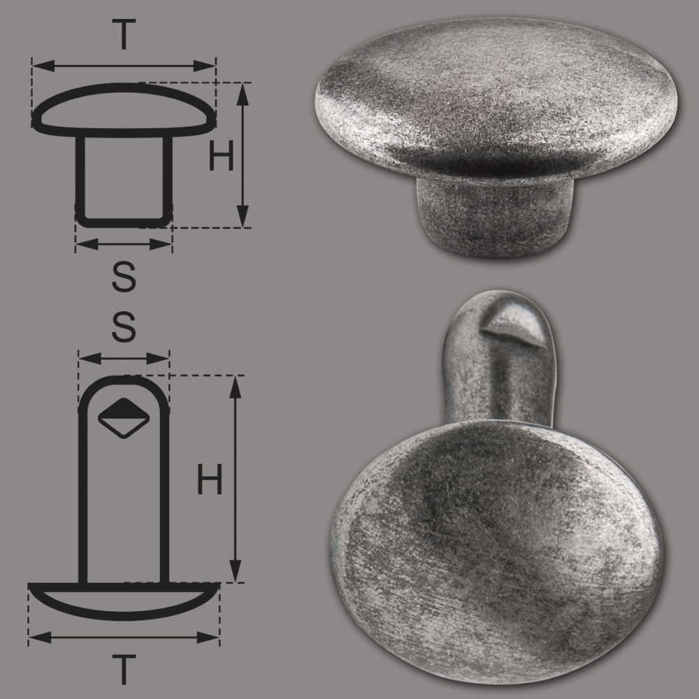 Doppelkopf-Hohlnieten Ziernieten 2-teilig 7mm "7/8/2" aus Eisen (nickelfrei), Finish: silber-antik