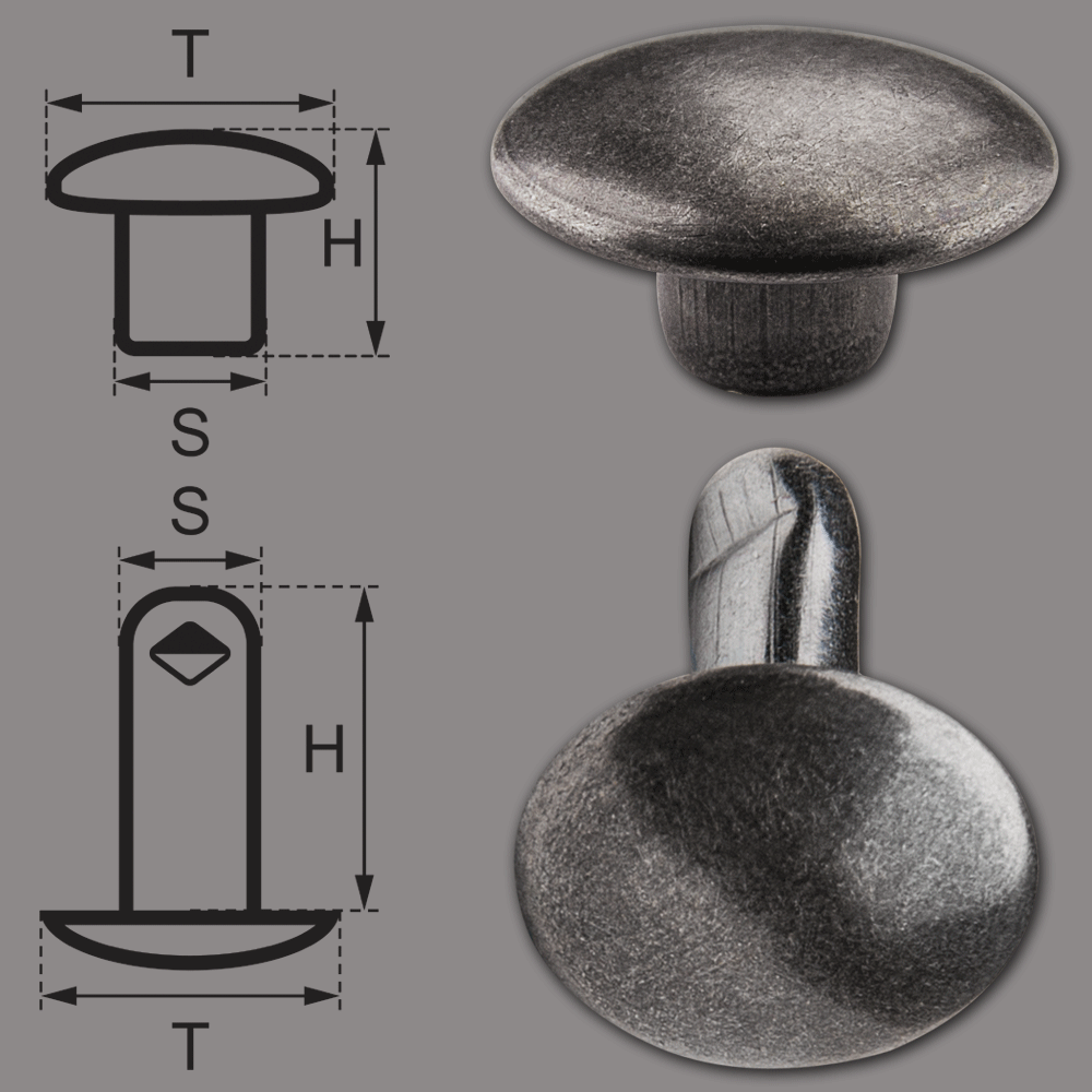 Doppelkopf-Hohlnieten Ziernieten 2-teilig 7mm "7/8/2" aus Eisen (nickelfrei), Finish: nickel-antik