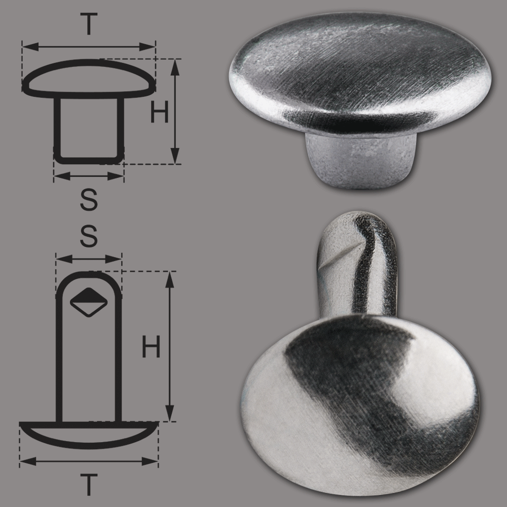 Doppelkopf-Hohlnieten Ziernieten 2-teilig 7mm "7/8/2" aus Eisen (nickelhaltig), Finish: nickel-glänzend