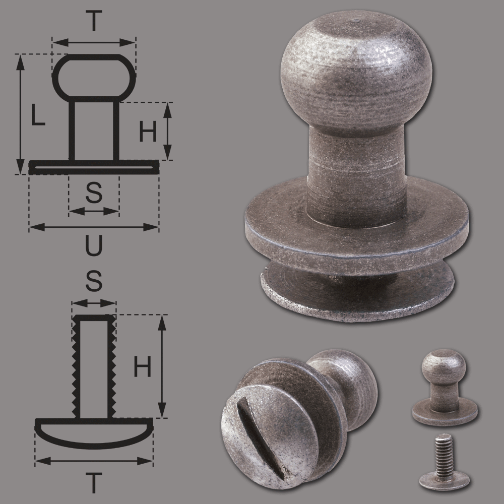 Knopfschraubnieten 6mm nickel-antik