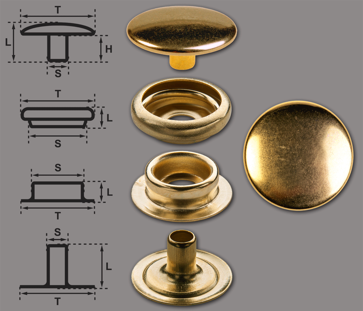 The corresponding tools as well as a wide range of snaps in different materials (nickel included, nickel free), finishings, cap sizes, with ornaments, strength of fastener and unit packs you will find in our shop.